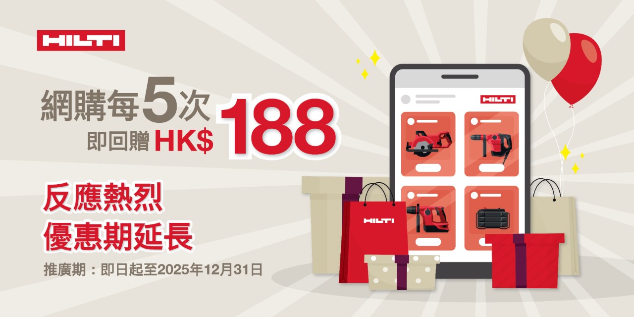 反應熱烈 , 優惠期延長! 網購每5次即回贈 HK$188