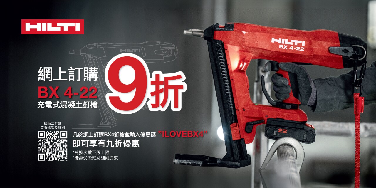 - 凡於網上訂購BX4釘槍並輸入優惠碼 ILOVEBX4,即可享有九折優惠