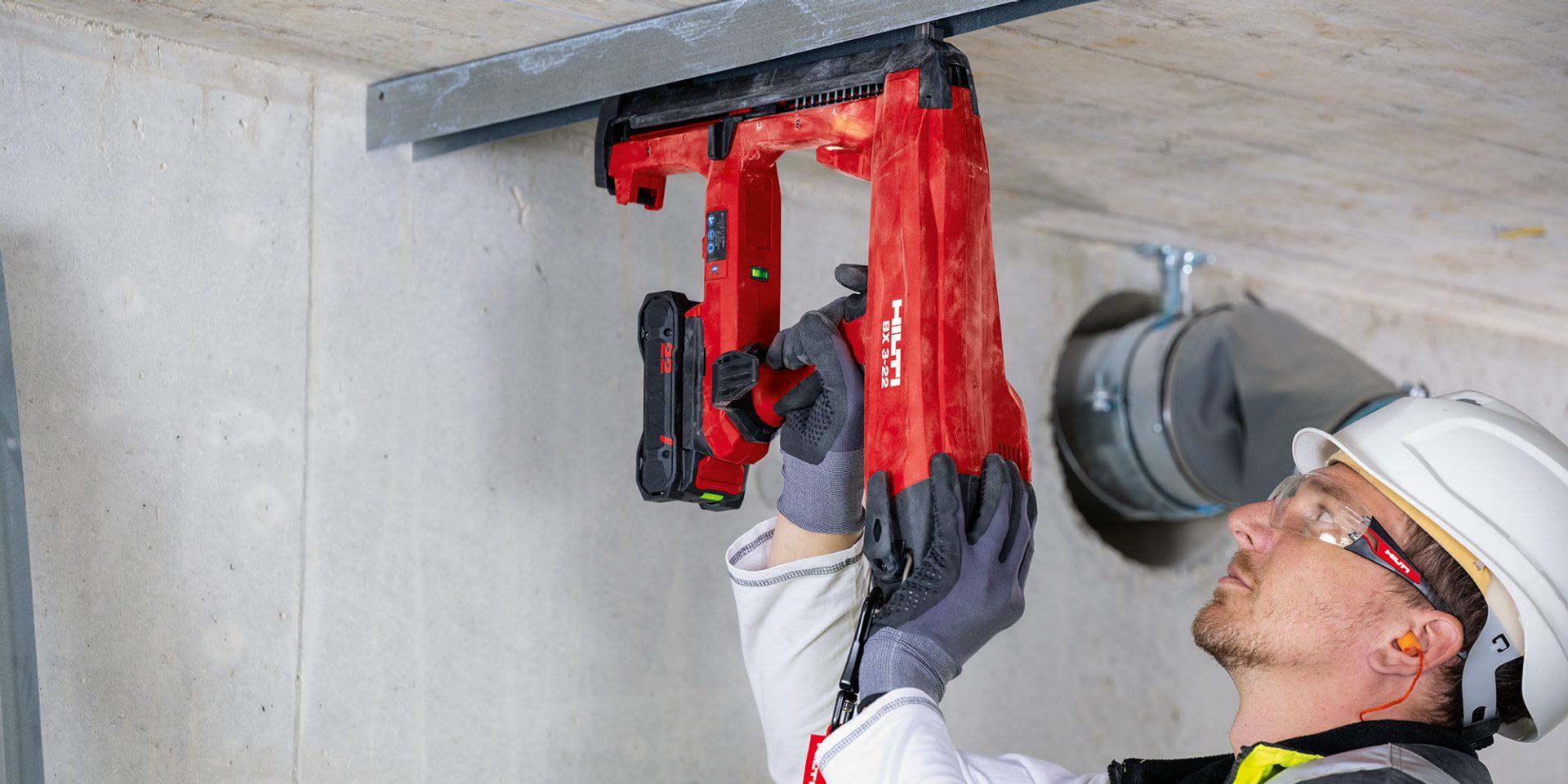 Nuron battery-powered fastening tool for attaching plasterboard track and other light-duty fastening to concrete, steel and masonry (max. nail length 30 mm│1-1/8”)