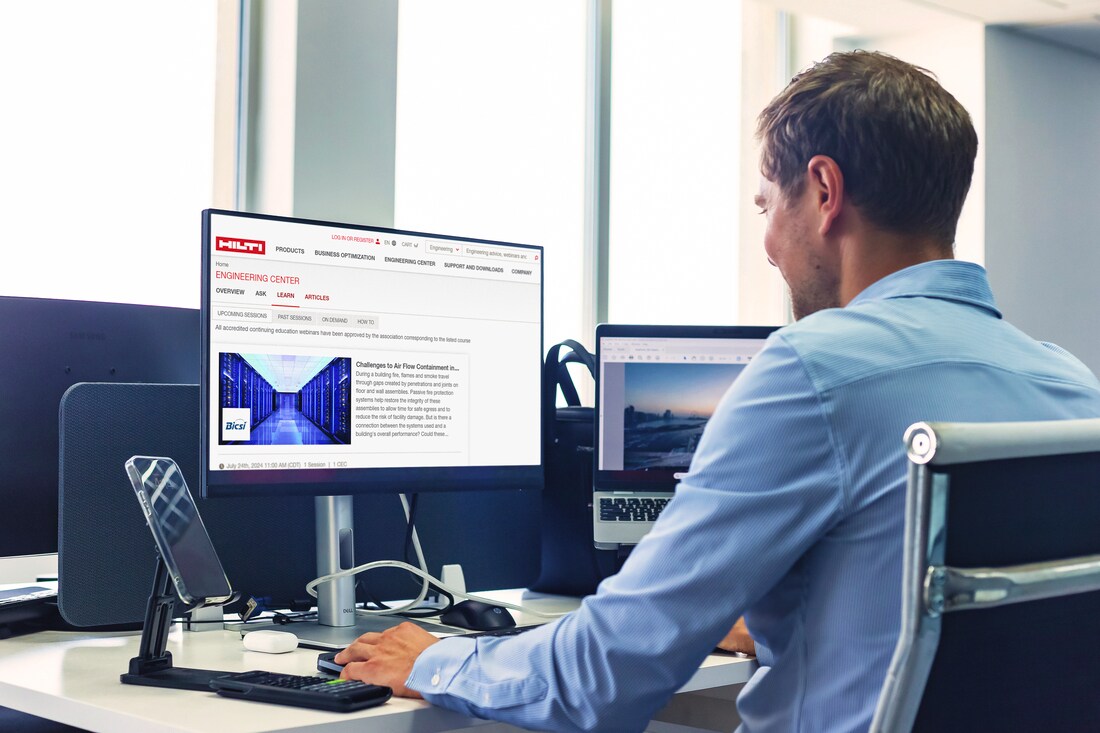 Participe dos nossos webinars de educação contínua, aprovados pela Hilti, e fique atualizado com as últimas inovações em engenharia.